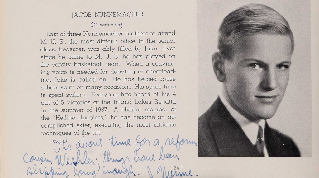 An avid sportsman, Milwaukee native Jacob “Jake” Robert Nunnemacher was drawn to Ivy League Dartmouth College primarily for the skiing and would captain the team his junior year. After graduating in 1942, Nunnemacher was one of 119 Dartmouth alums from 23 classes recruited by the 10th Mountain Division.